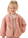 Kids' Faux Fur Bomber Jacket, Dusty Rose