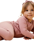 MORI Kids' Cotton Blend Ribbed Leggings, Rose