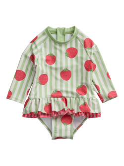 Baby Sunsafe Strawberry & Stripe Print Long Sleeve Swimsuit, Multi