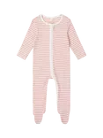 Ribbed Two Way Zip-Up Sleepsuit, Pink Stripe