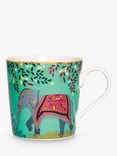 Escape to India Elephants Oasis 22ct Gold Fine China Mug, 340ml, Jade/Multi
