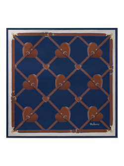 Heart Pockets Silk Twill Square Scarf, Pigment Blue/Tan