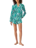 Banana Leaf Organic Cotton Long Sleeve Pyjama Short Set, Green/Pink