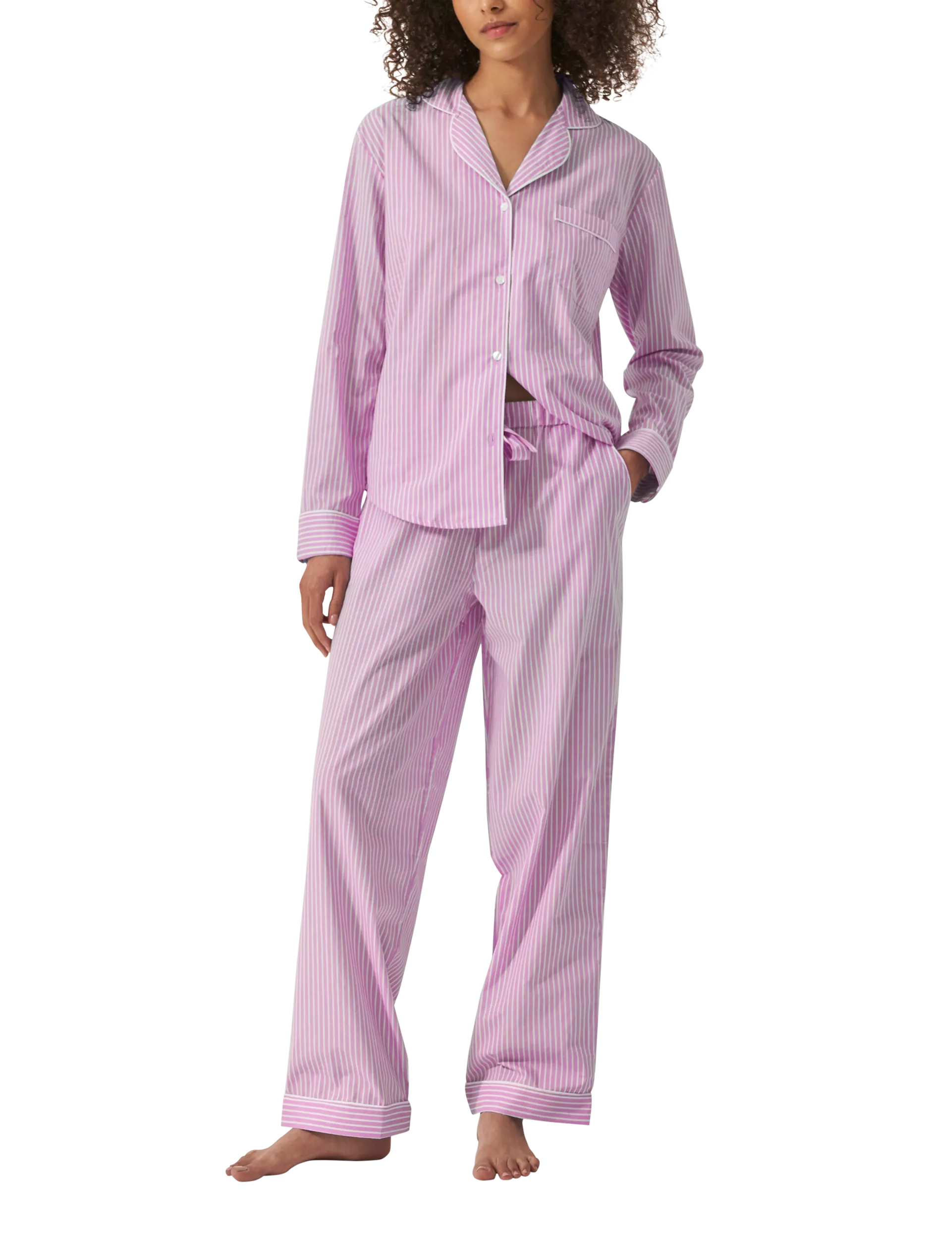myza Striped Organic Cotton Long Sleeve Pyjama Trouser Set, Blue/White£50.00View this product in other colours by selecting one of the following:This colour is availableThis colour is availableThis colour is unavailable