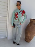 Octopus Blanket Stitch Cardigan, Blue