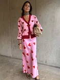 V-Neck Hearts Knit Cardigan, Pink/Red