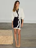 Jaspre Scallop Edge Cotton Linen Mini Skirt, Black/White