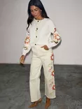 Floral Embroidered Scallop Pocket Jeans, Cream/Multi