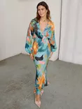 Print Elasticated Waist Dress, Blue/Multi