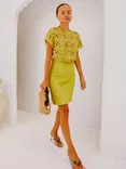 Crochet Knit Satin Skirt Dress, Olive