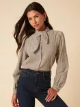 Lawrence Ruffle Collar Check Blouse containing LENZING™ ECOVERO™ Viscose, White
