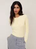 Ribbed Cotton Long Sleeve Henley Top, Yellow