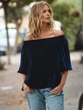 Vivian Silk Blend Velvet Off Shoulder Top, Midnight