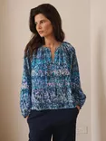 Angelica Watercolour Pure Silk Top, Denim/Multi
