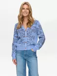 Nuseida V-Neck Floral Knit Cardigan, Blue/Grey