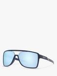Oakley OO9147 Men's Castel Prizm Polarised Rectangular Sunglasses, Matte Navy/Light Blue