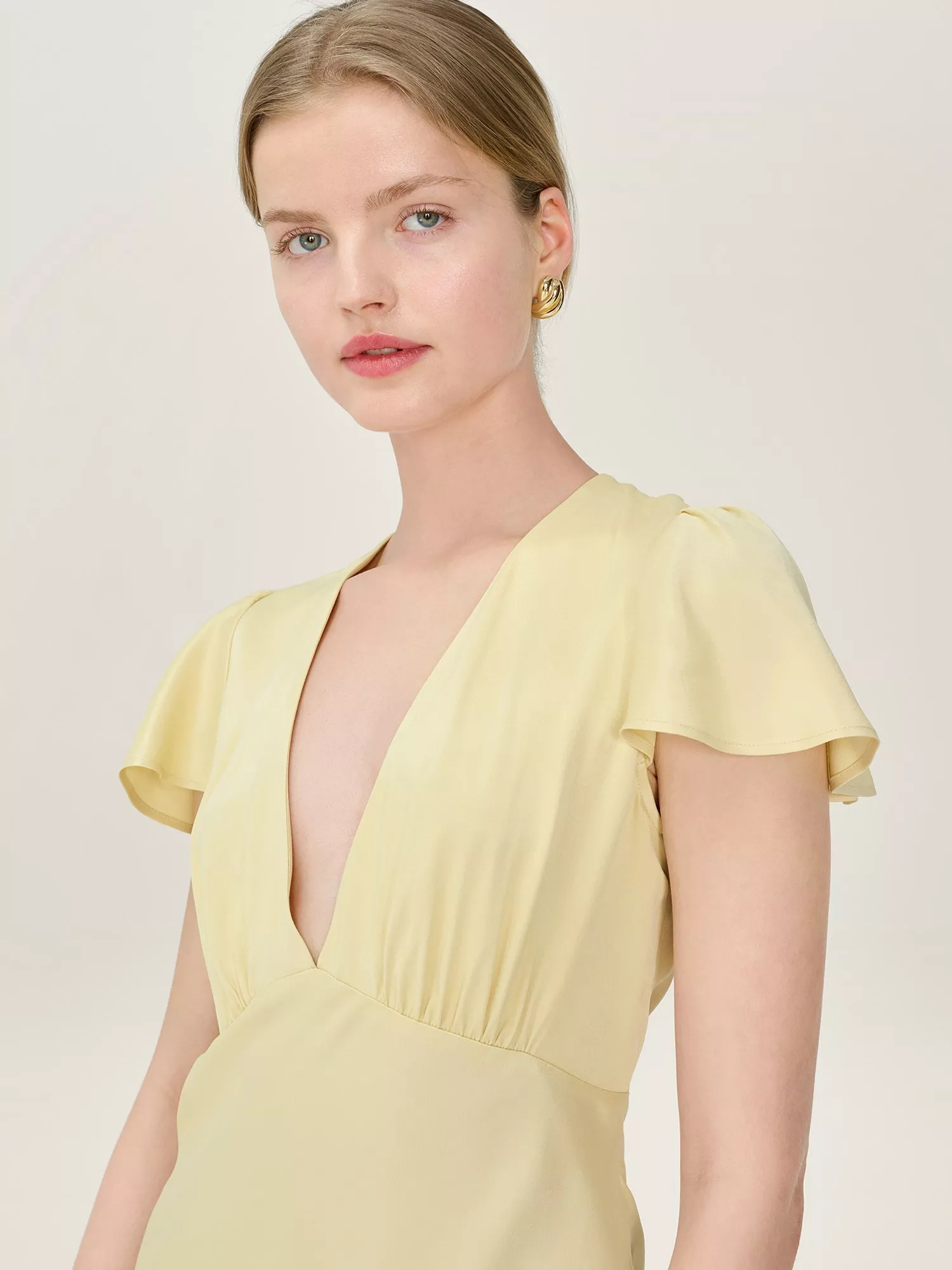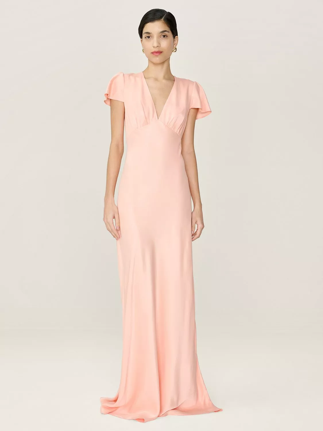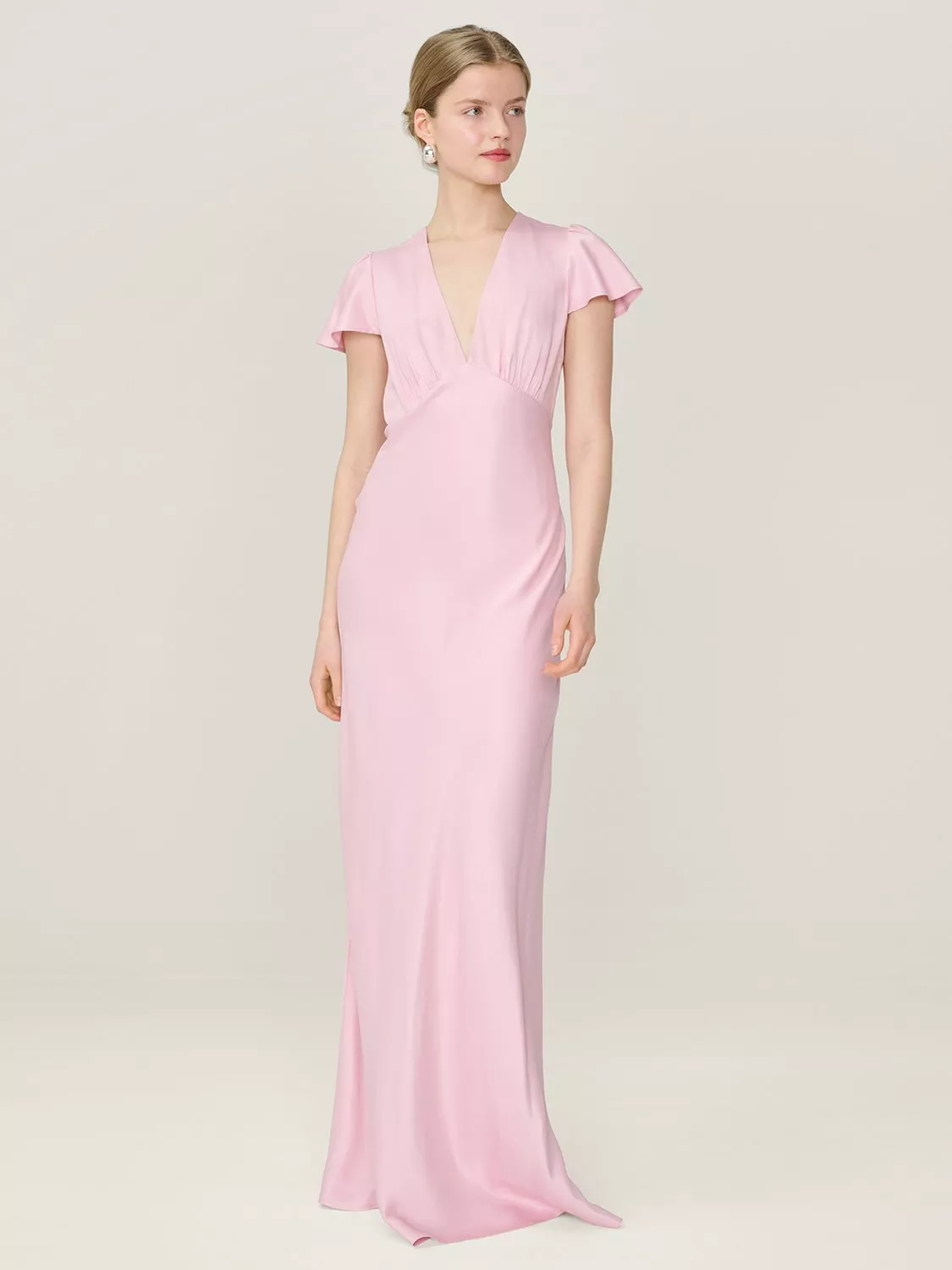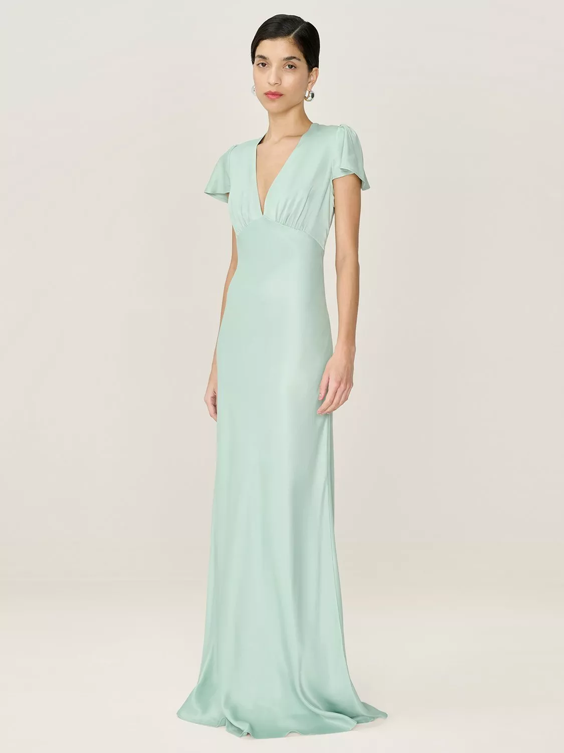 OMNESFai V-Neck Satin Maxi Dress£110.00Powder Blue is availableSage is availablePeach is availableDusty Pink is availableButter Yellow is available+ More colours available