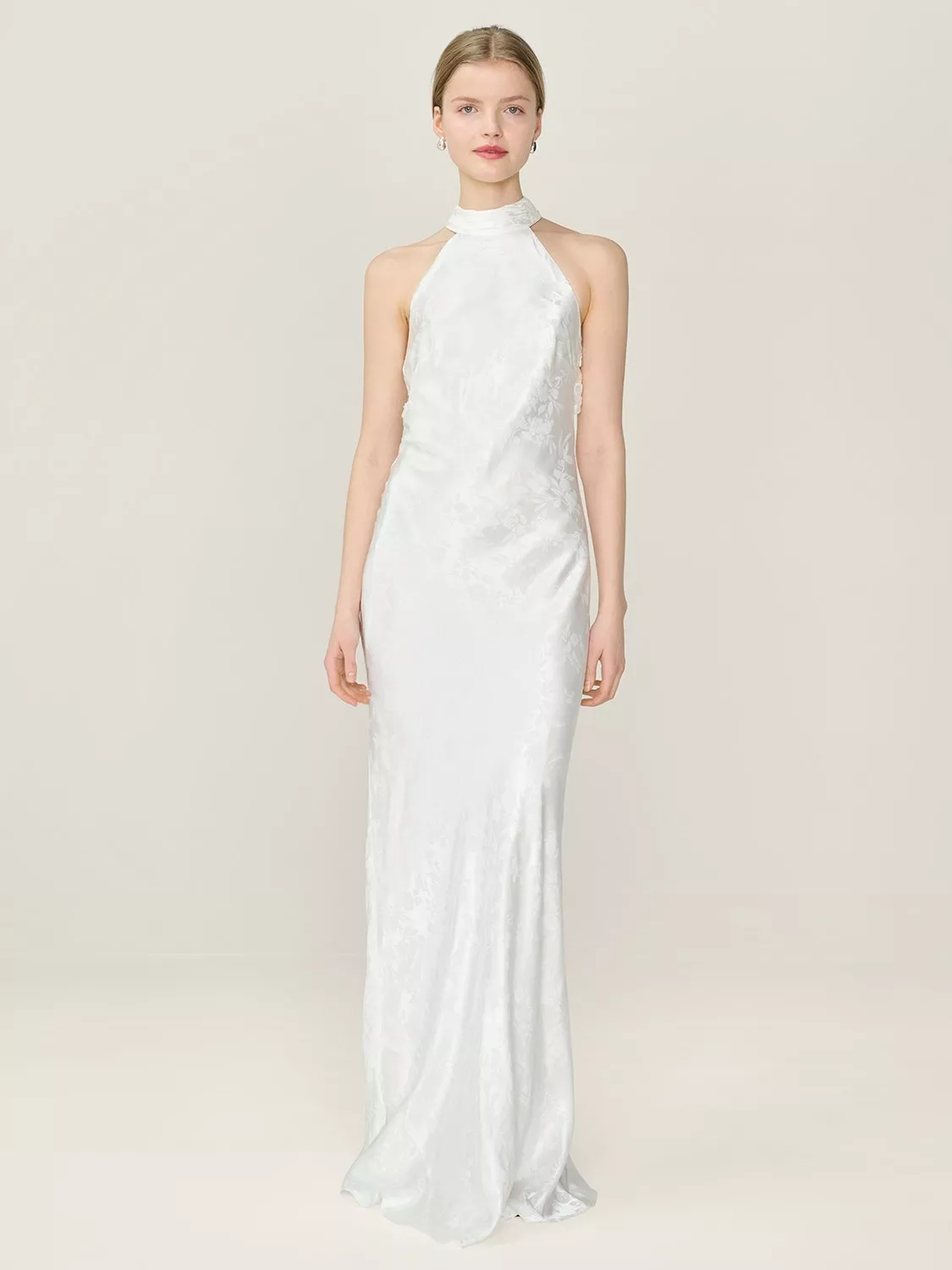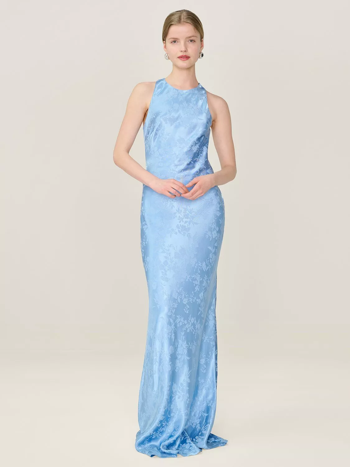OMNESMilos Halterneck Open Back Bridesmaid Dress£120.00 – £160.00Powder Blue is availableSage is availablePeach is availableDusty Pink is availableIvory is availableButter Yellow is available+ More colours available