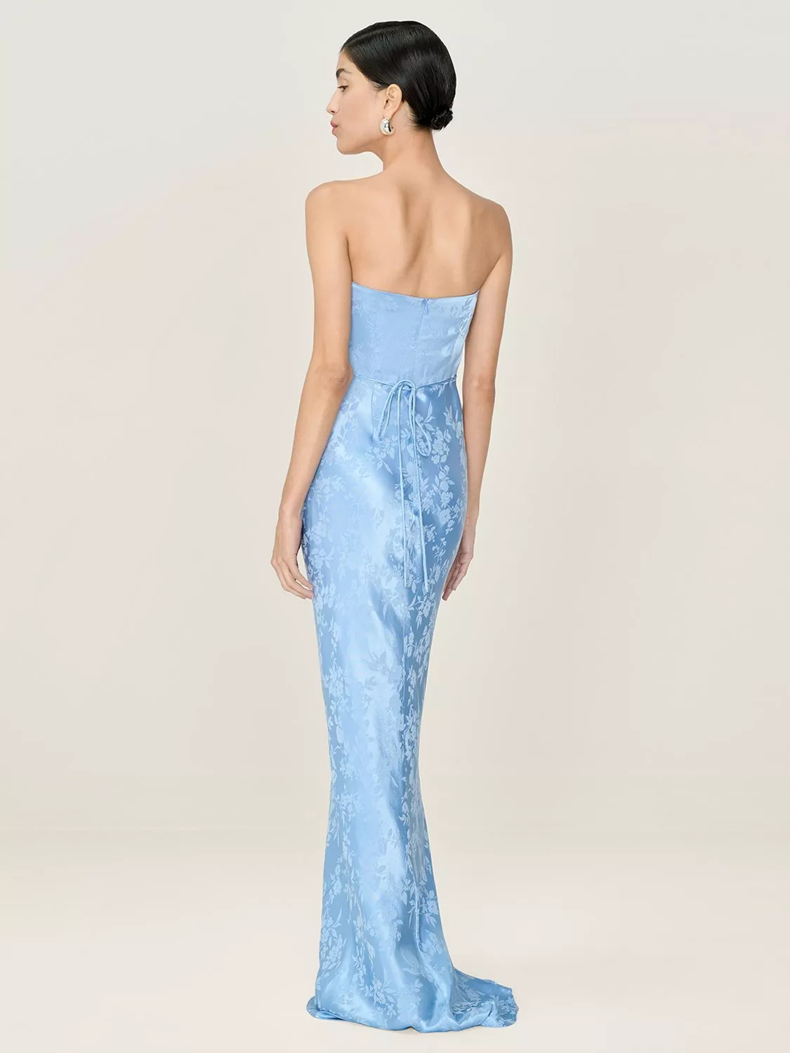 OMNESAmdra Jacquard Strapless Bridesmaid Dress£110.00Powder Blue is availableSage is availablePeach is availableDusty Pink is availableButter Yellow is available+ More colours available