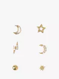 Celestial Ear Party Stud Earrings, Pack of 6, Pale Gold