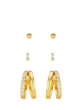 Swarovski Emerald Stud & Hoop Earrings, Pack of 3, Pale Gold