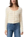Fortuna Stripe Pure Cashmere Cardigan, Antique White/Gold