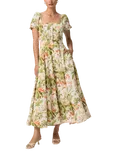 Coralee Floral Silk Linen Blend Top, White/Multi