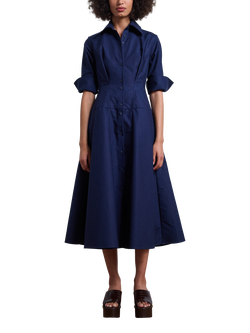 Short Sleeve A-Line Contour Dress, Navy