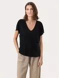 Part Two Axelines Linen Blend V-Neck T-Shirt, Black