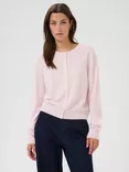 Noelani Crew Neck Pure Wool Cardigan, Mauve Chalk
