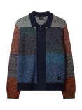 Zip Through Wool Blend Striped Cardigan, Blue/Multi