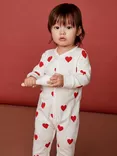 PetitBateau Baby Organic Cotton Heart Print Sleepsuit, Marshmallow/Terkuit