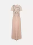 Zena Beaded Tulle Maxi Dress, Pale Pink/Silver