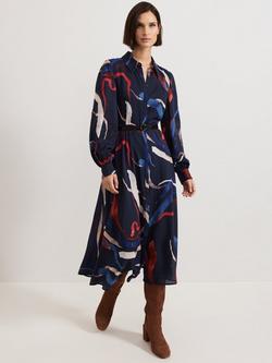 Katy Abstract Belted Midi Shirt Dress, Navy/Multi