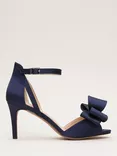 Satin Bow Heeled Sandals, Navy