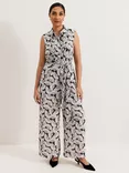 Petite Janine Fan Print Jumpsuit, Navy/Ivory