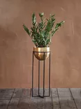 nkuku Atsu Indoor Planter & Stand, Antique Brass