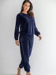 Ribbed Cosy Fleece Lounge Pyjama Set, Navy