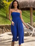 Anna Strapless Shirred Bodice Crop Leg Beach Jumpsuit, Ultramarine