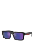 Prada Linea Rossa PS A07S Men's Rectangular Sunglasses, Black/Mirror Purple