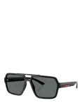 Prada Linea Rossa PS A06S1 Men's Polarised Square Sunglasses, Black/Grey