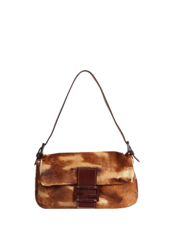 Pre-loved Fendi Mamma Baguette Harako and Leather Shoulder Bag, Brown/Multi
