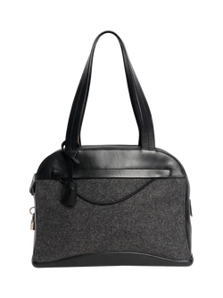 Pre-loved Prada Dark Grey Wool And Leather Top Handle Bag, Grey