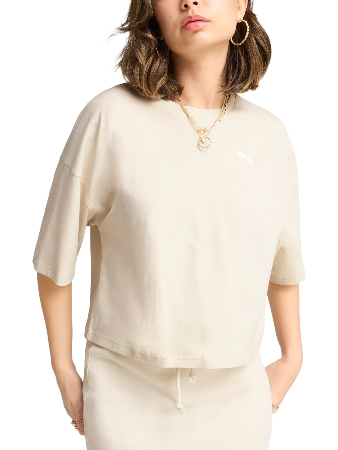 Email when available, PUMA Wardrobe Essentials Logo Oversized Cropped T-Shirt PUMAWardrobe Essentials Logo Oversized Cropped T-Shirt£22.00Velvet Moss is unavailablePuma Black is availableWhite White is availableWhite Off White is unavailable+ More colours available