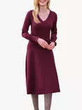 Scallop V-Neck Knitted Dress, Merlot