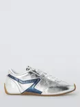 Retro Slim Lace-Up Suede Trainers, Silver/Navy