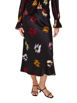 Anya Blurred Floral Midi Skirt, Black/Multi