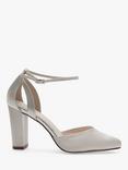 Eve Block Heel Strappy Court Shoes, Ivory Satin