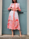 Cora Floral Print High Neck Midi Dress, Orange/White