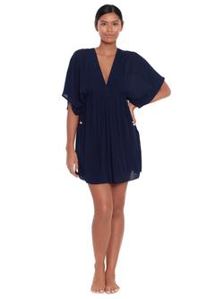 Lauren Ralph Lauren Crinke Adjustable Side Tie Logo Tunic, Dark Navy